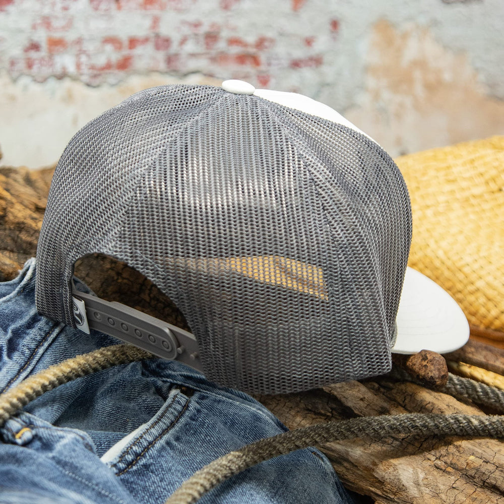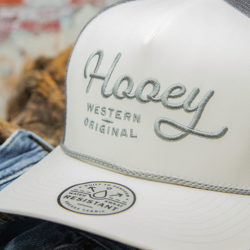 HOOEY OG Adjustable Snapback Trucker Mesh Back Hat with Logo (White/Grey)