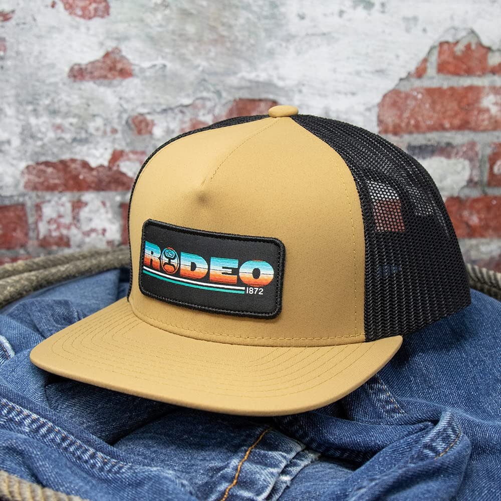 HOOEY Youth Adjustable Snapback Mesh Back Trucker Hat (Rodeo - Tan/Black)