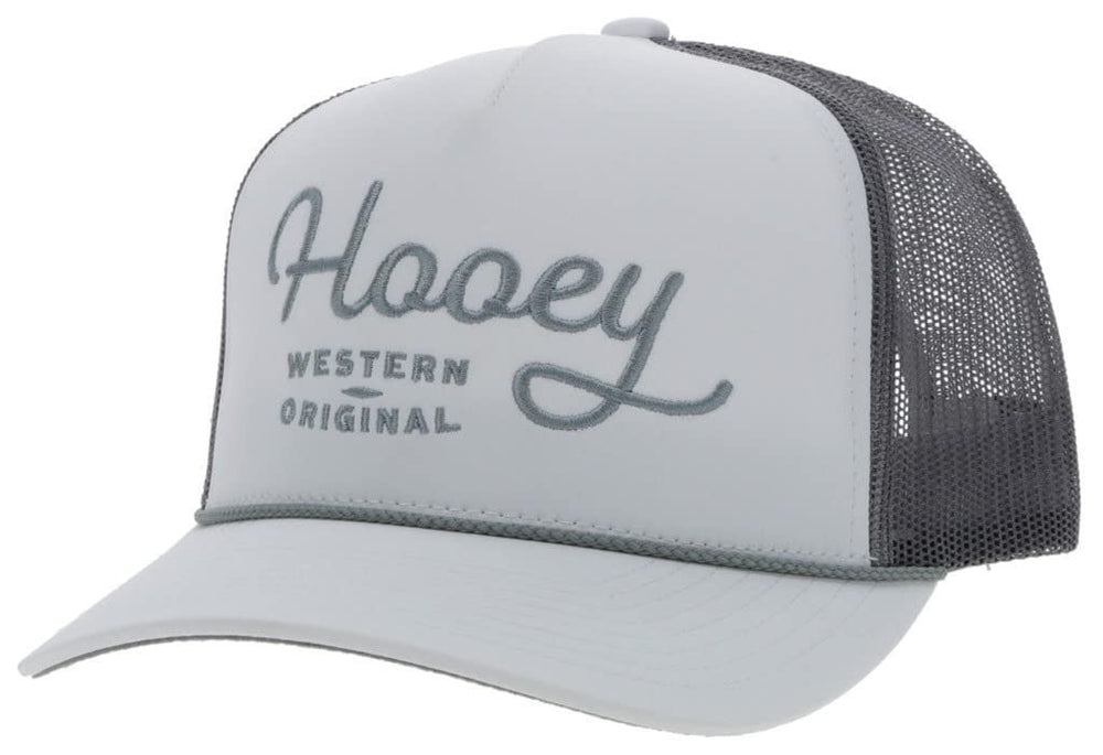 Add HOOEY OG Adjustable Snapback Trucker Mesh Back Hat with Logo (White/Grey) to the cart