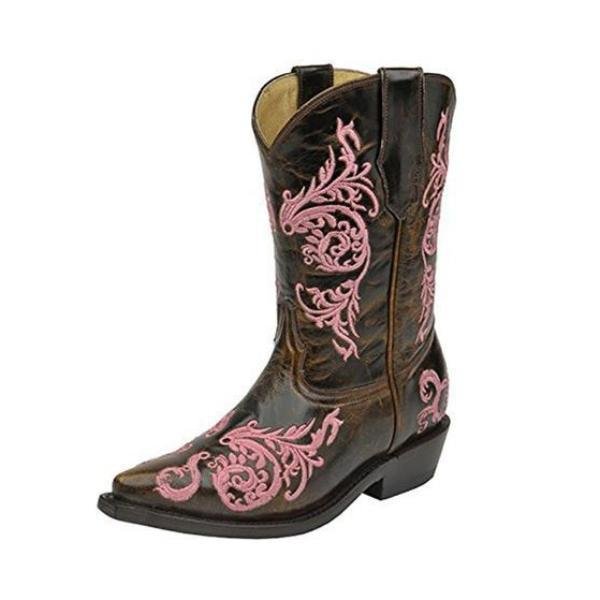 Corral Boots Girls' Pink Dahlia Floral Embroidery Cowboy Boot