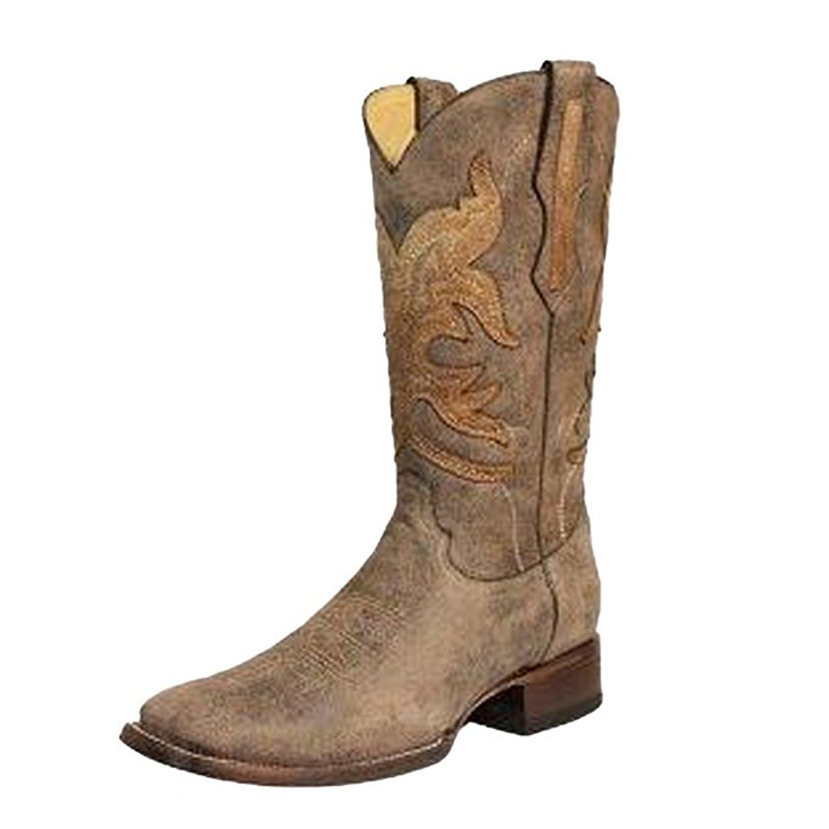 The Corral Boots Men's Brown Overlay Square Toe Cowboy Boot is handcrafted from genuine leather in a rich taupe-like brown, accented with darker brown overlays for a bold yet wearable look. Built for performance and made to stand out in subtle ways, this square toe boot is perfect for rodeo weekends, ranch life, or just showing off your style downtown.