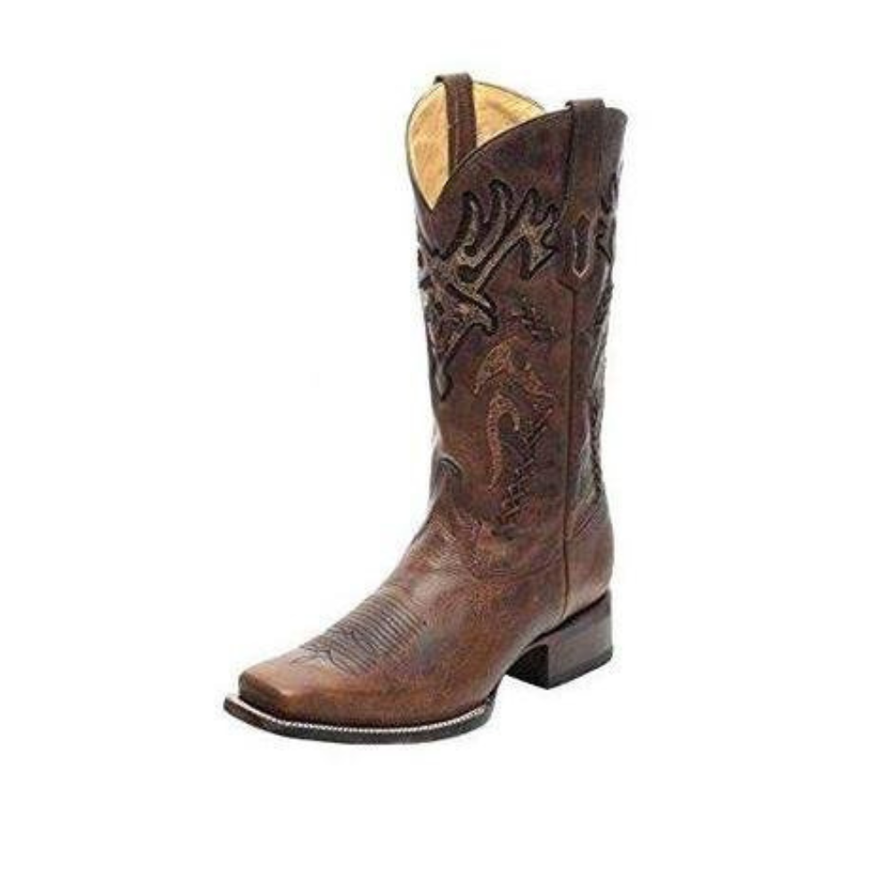 Corral Boots Men's Brown Woven Overlay Square Toe Cowboy Boot