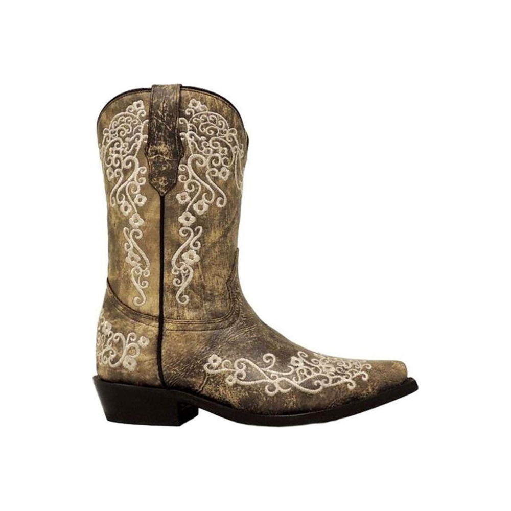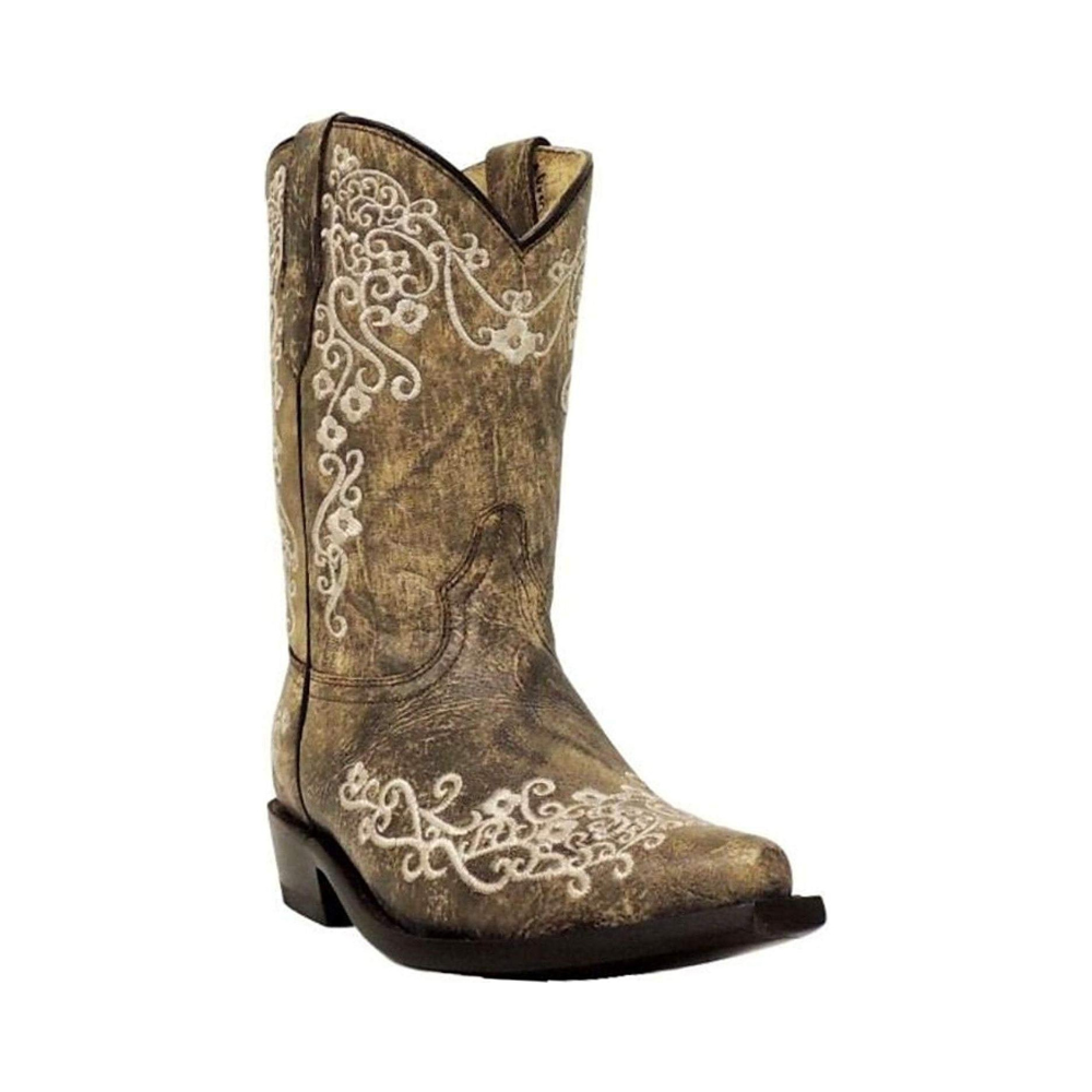 Add Corral Boots Girls' Bone Color Floral Embroidery Snip Toe Cowboy Boot to the cart