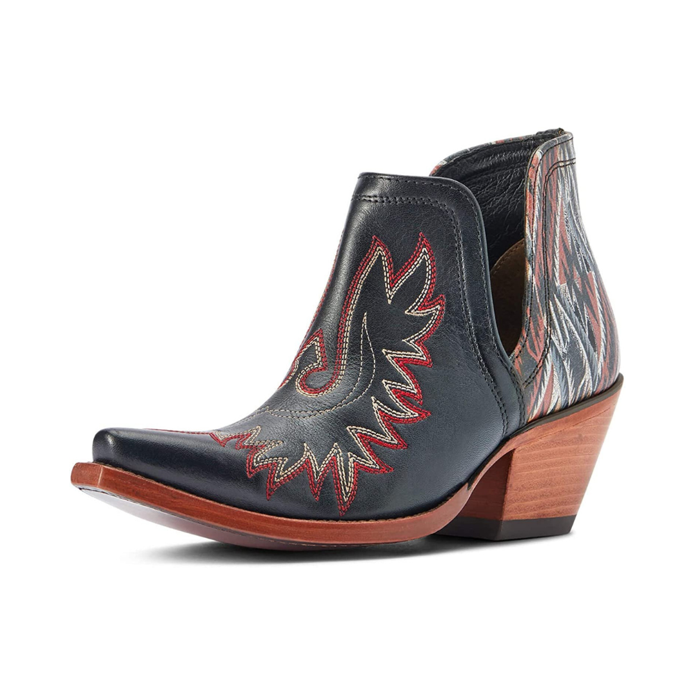 The Ariat Women's Dixon Chimayo Western Boot blends timeless Southwestern artistry with modern Western style. Featuring a Chimayo-inspired print and sleek fashion-forward profile, this limited-edition bootie delivers statement-making style with all-day comfort thanks to ATS® technology and a vegetable-tanned leather sole.