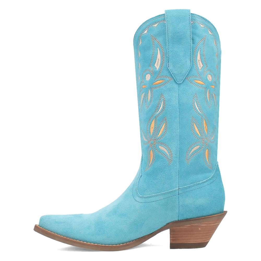 Dingo Women's Sabana Suede Leather Embroidered Snip Toe Western Boots, Blue