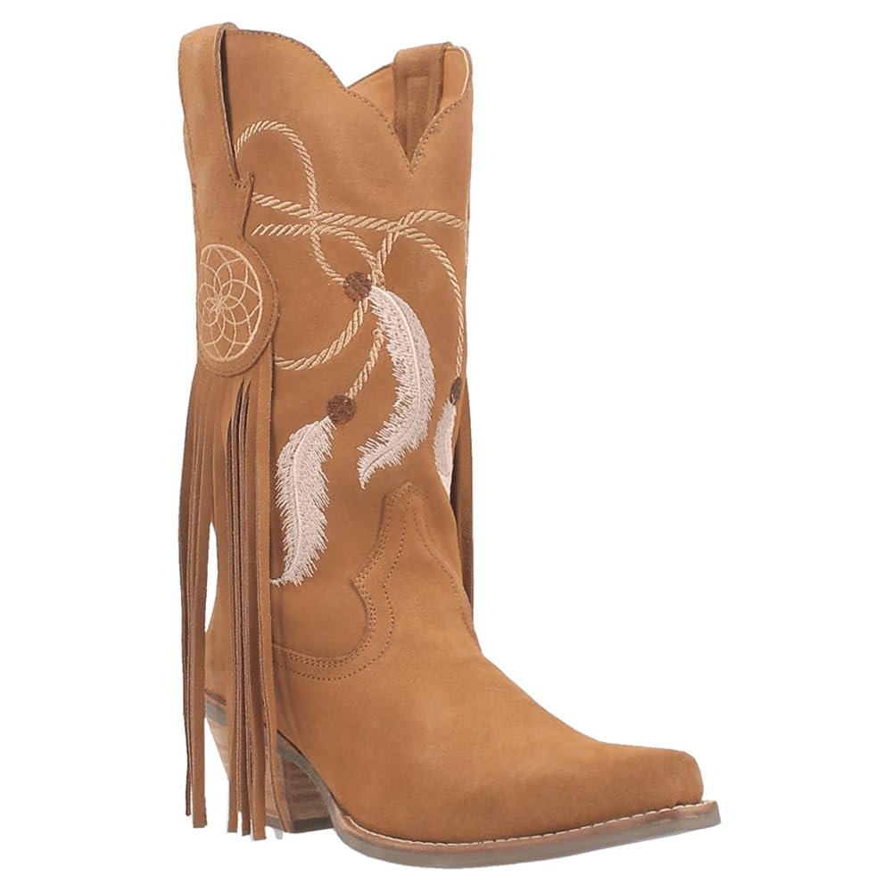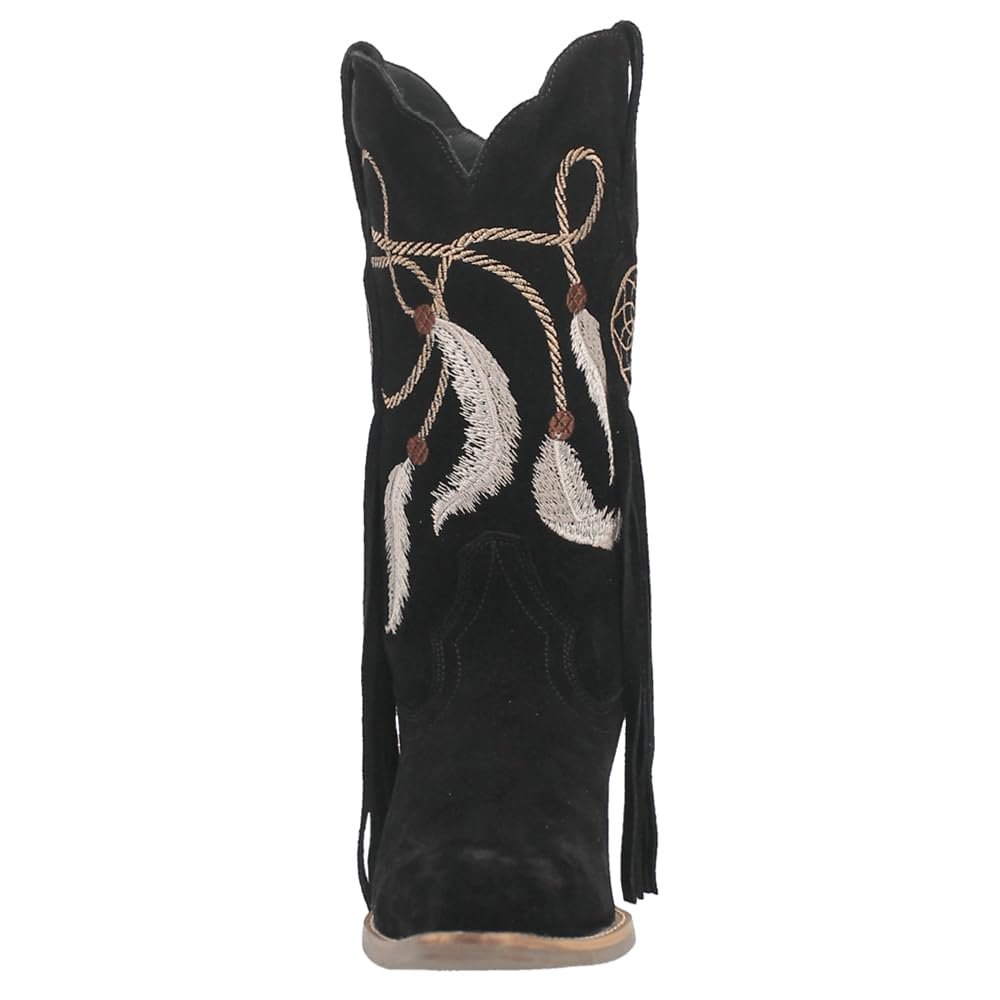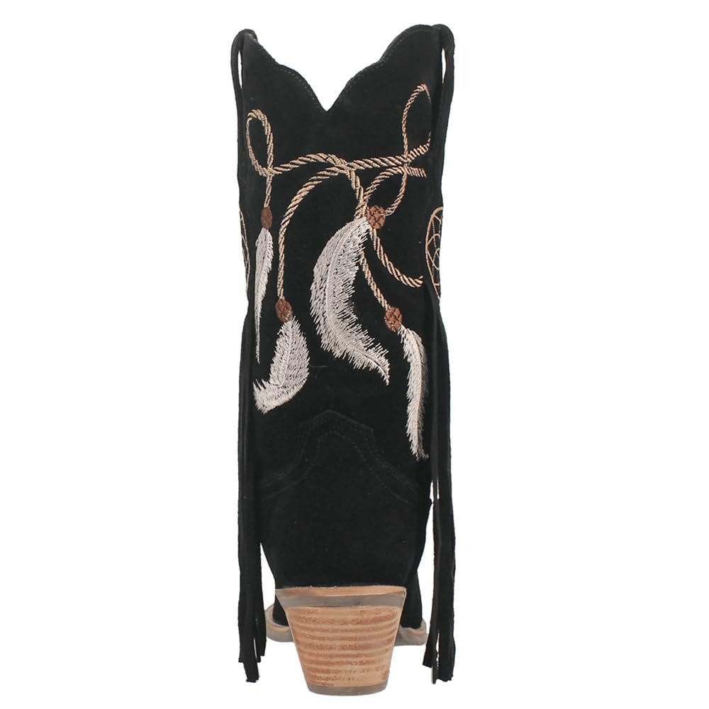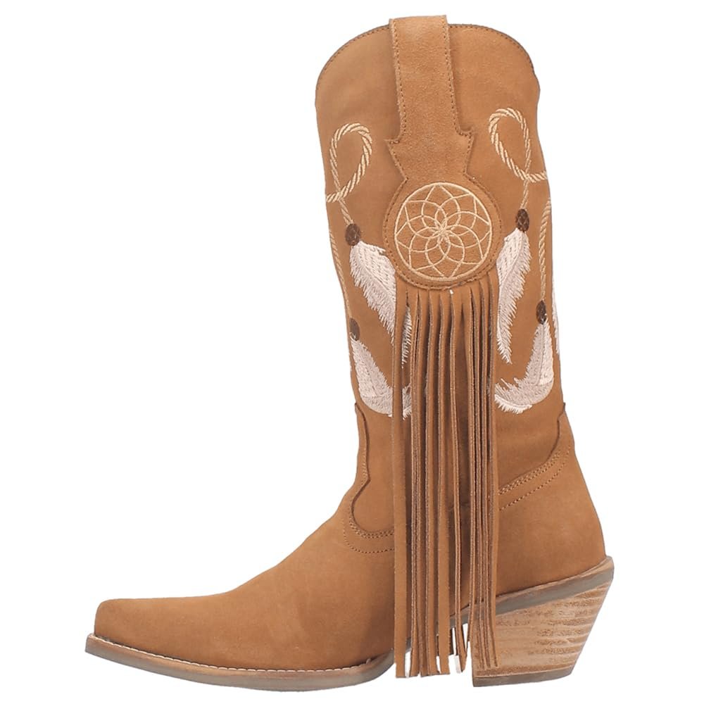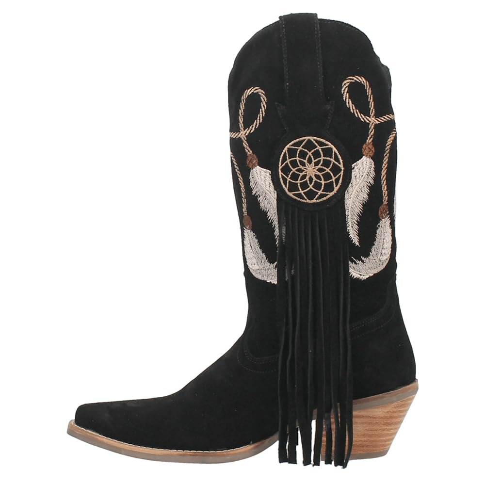 A vision of loveliness, the Day Dream 12-inch boot is trance-inducing. Featuring easy pull-on tabs, 2 1/2 inch heel and chic fringe. The Day Dream's show stopping detail is in it's dream catcher design throughout the shaft.