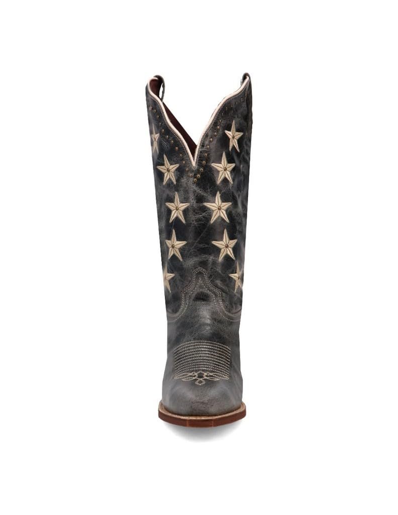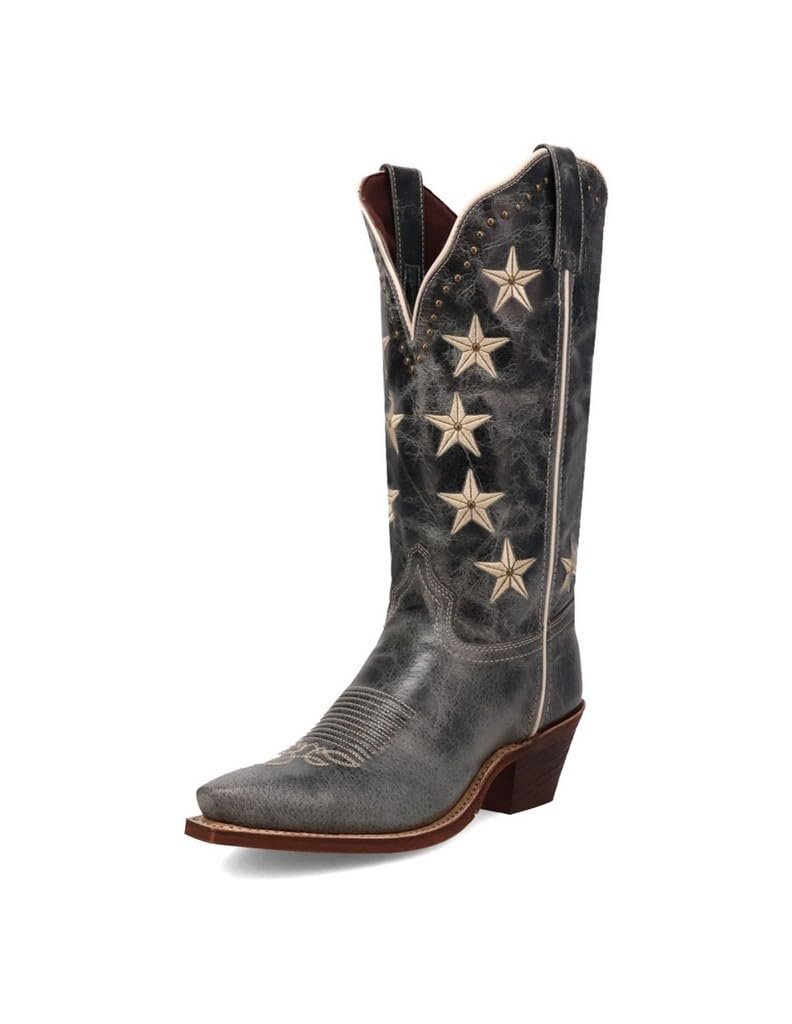 Make a statement on and off the ranch with the Laredo Women's Wide Calf Serenade Western Boot in deep navy leather. Adorned with bold star embroidery and accented with subtle metallic studs, these boots capture the true spirit of western heritage. The 12-inch shaft and snip toe give a sleek silhouette, while the medium cowboy heel adds just enough lift without compromising comfort. Finished with textile lining and a durable rubber outsole, they're your go-to brown cowgirl boots for dancing through Saturday nights or strolling around Sunday mornings.
