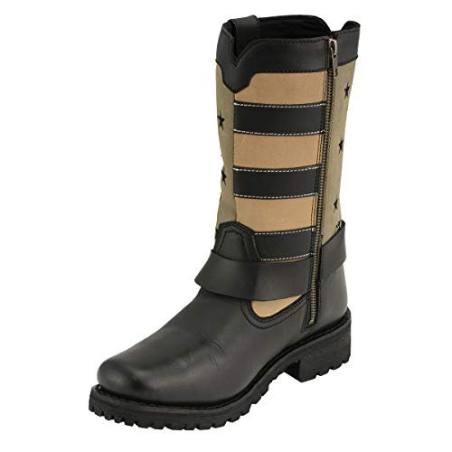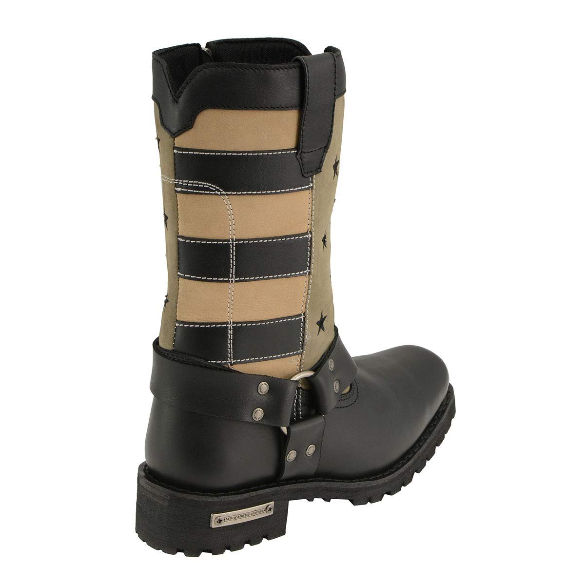 Milwaukee Leather Women’s Stars and Stripes Black with Tan Leather Motorcycle Rider Harness Boot