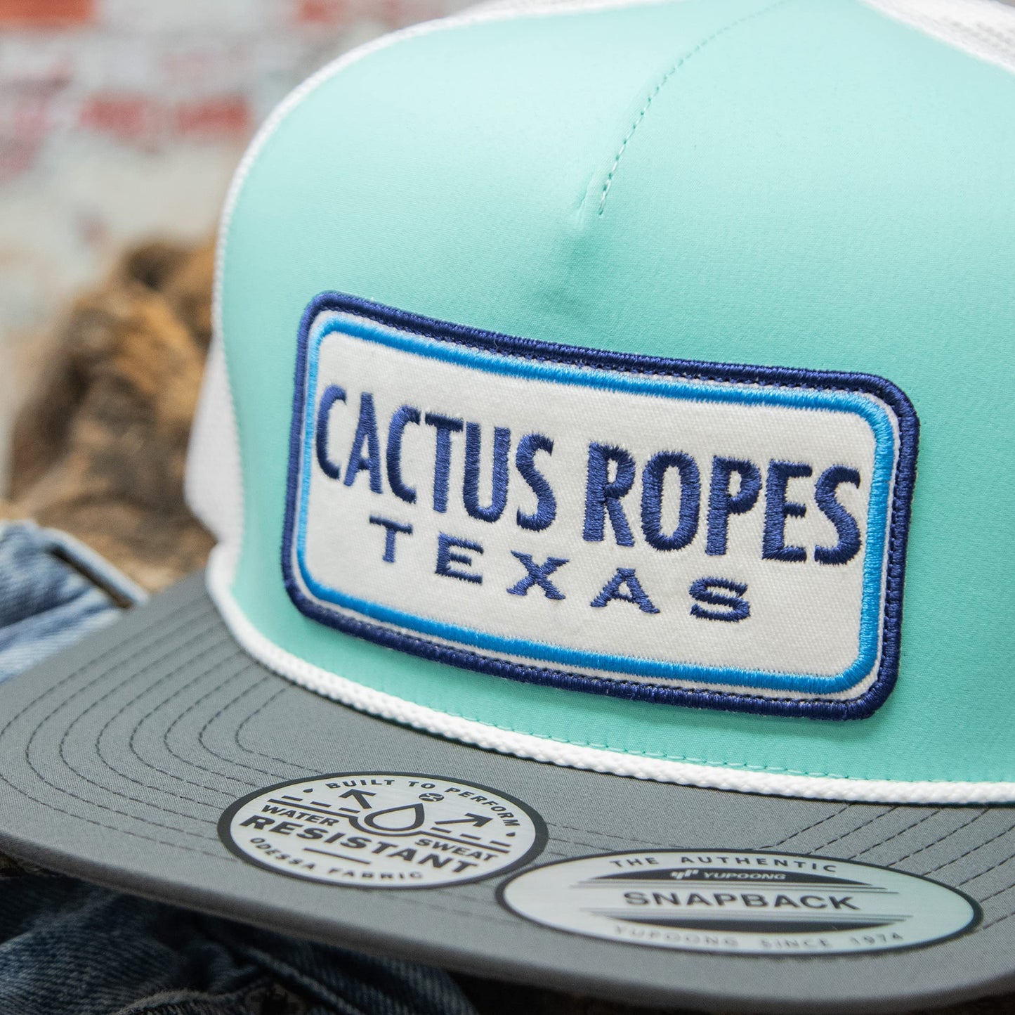 The Hooey Cactus Ropes Mint/White Snapback Hat combines a bold colorway with breathable comfort. The mint front panel is embroidered with “Cactus Ropes Texas” in brown, outlined with a matching brown rectangle for a clean Western finish. A white mesh back keeps airflow steady, while the adjustable snapback ensures a perfect fit for all-day wear. Whether you’re on the ranch or in town, this hat is ready to keep up.