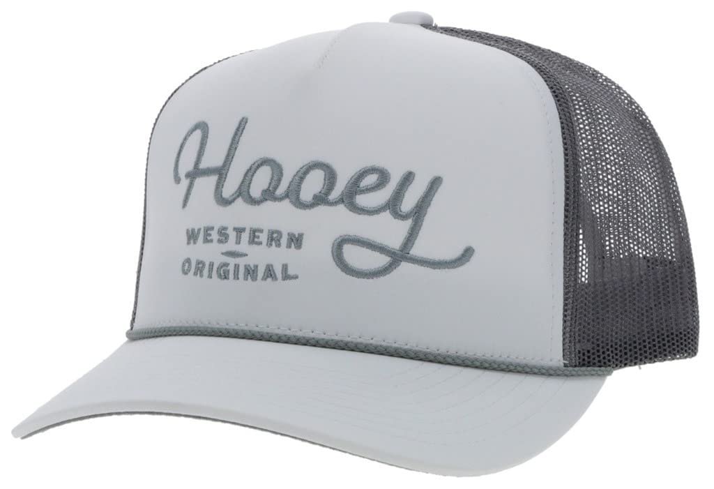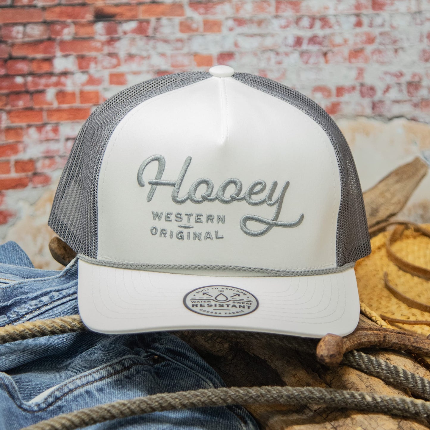 HOOEY OG Adjustable Snapback Trucker Mesh Back Hat with Logo (White/Grey)