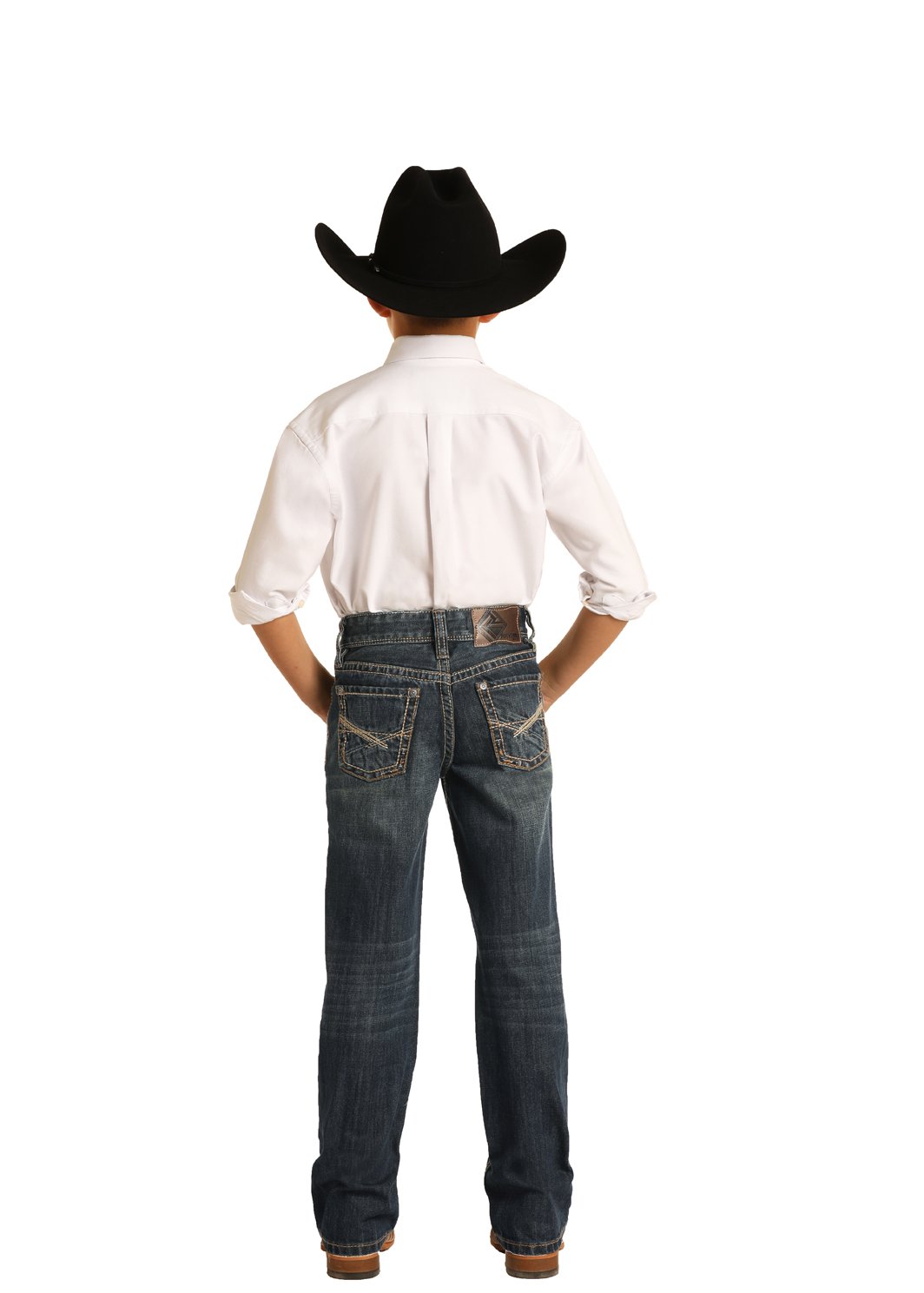Rock and Roll Denim Boy's Reflex Regular Fit Boot Cut Jeans, Dark Vintage, 8 Regular