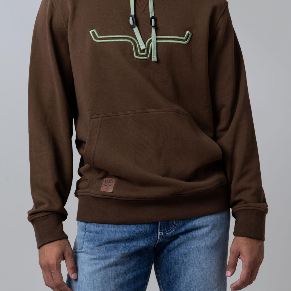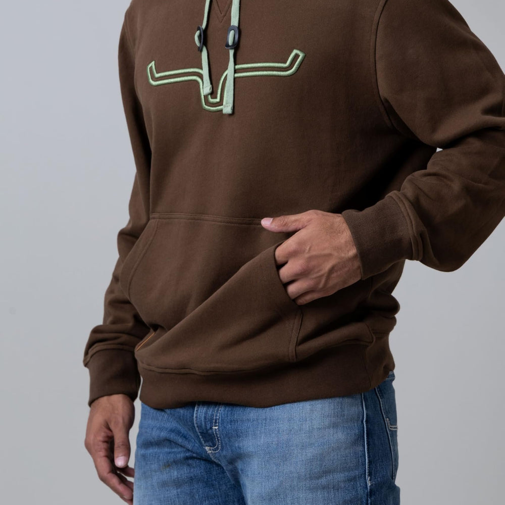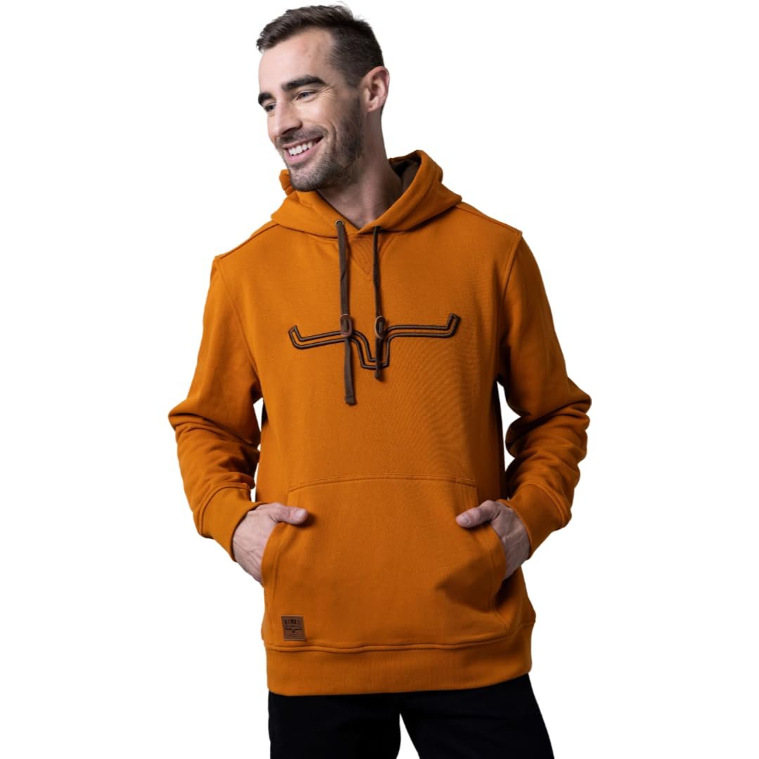 Our popular heavy weight French terry in a simple yet stylish pullover. Accented with a 3-D embroidered horns outline at the chest, the Fast Talker will quickly become your go-to hoodie. The contrast color-lined hood is adjustable with drawstrings and leather pulls and a matching leather logo patch. This will be a Fall favorite.