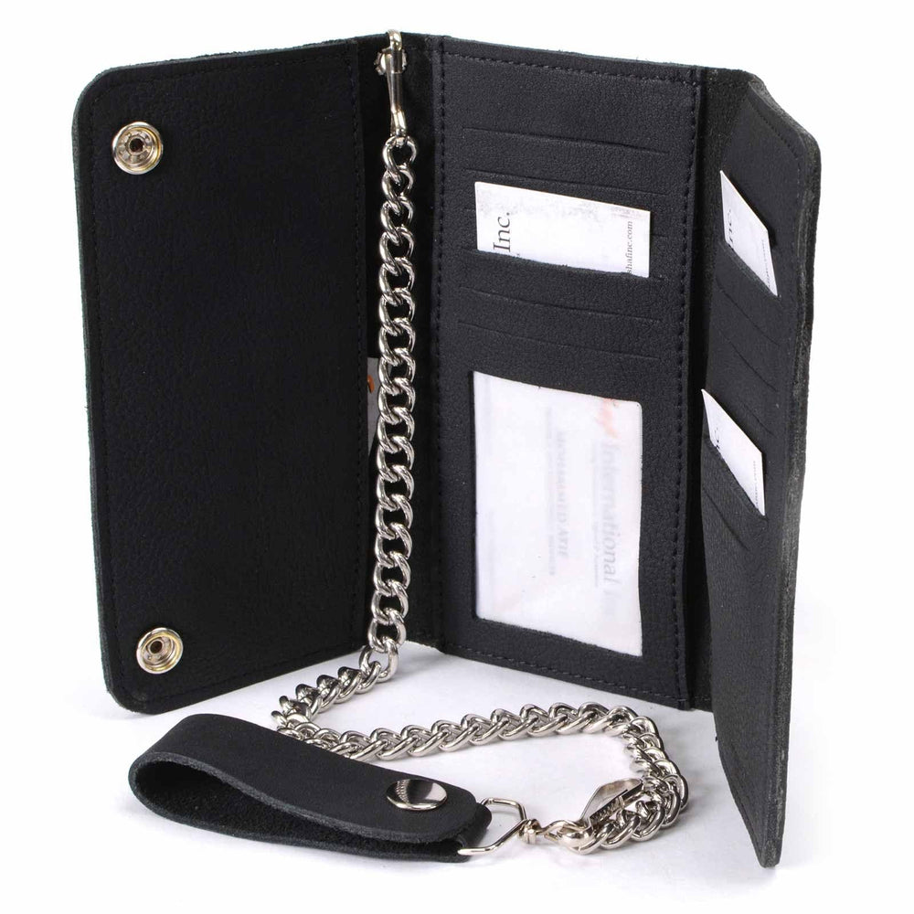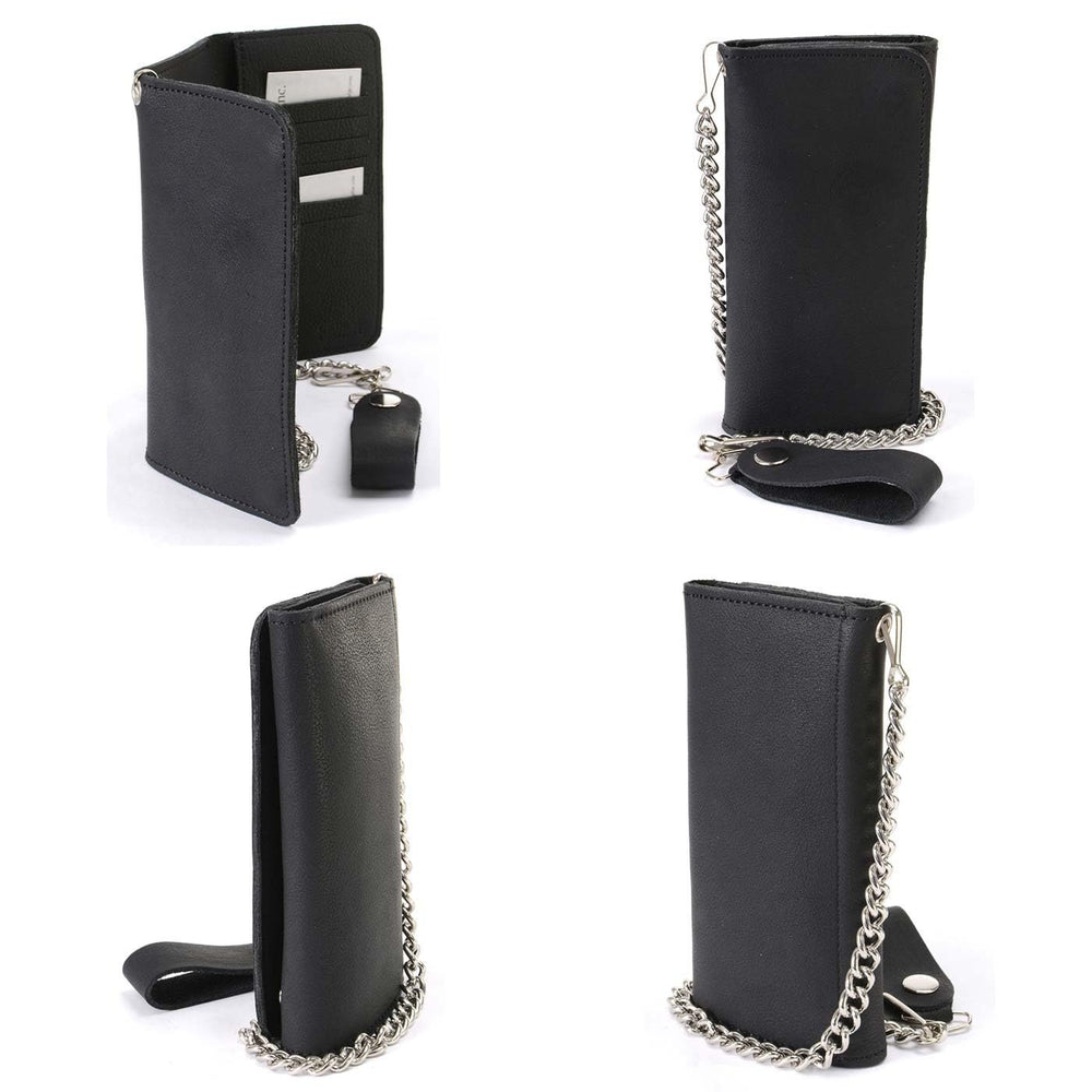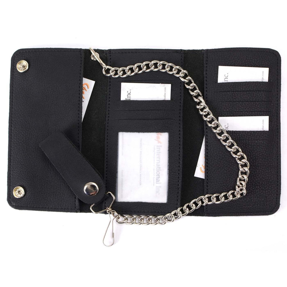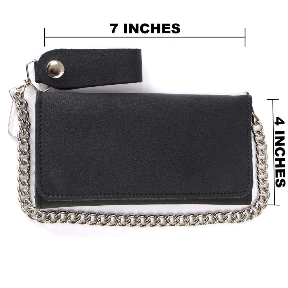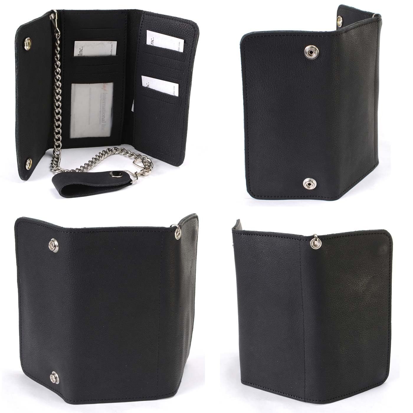 Milwaukee Leather Men's Genuine Leather Tri-Fold Biker Wallet w/Anti-Theft Stainless Steel Chain, Black