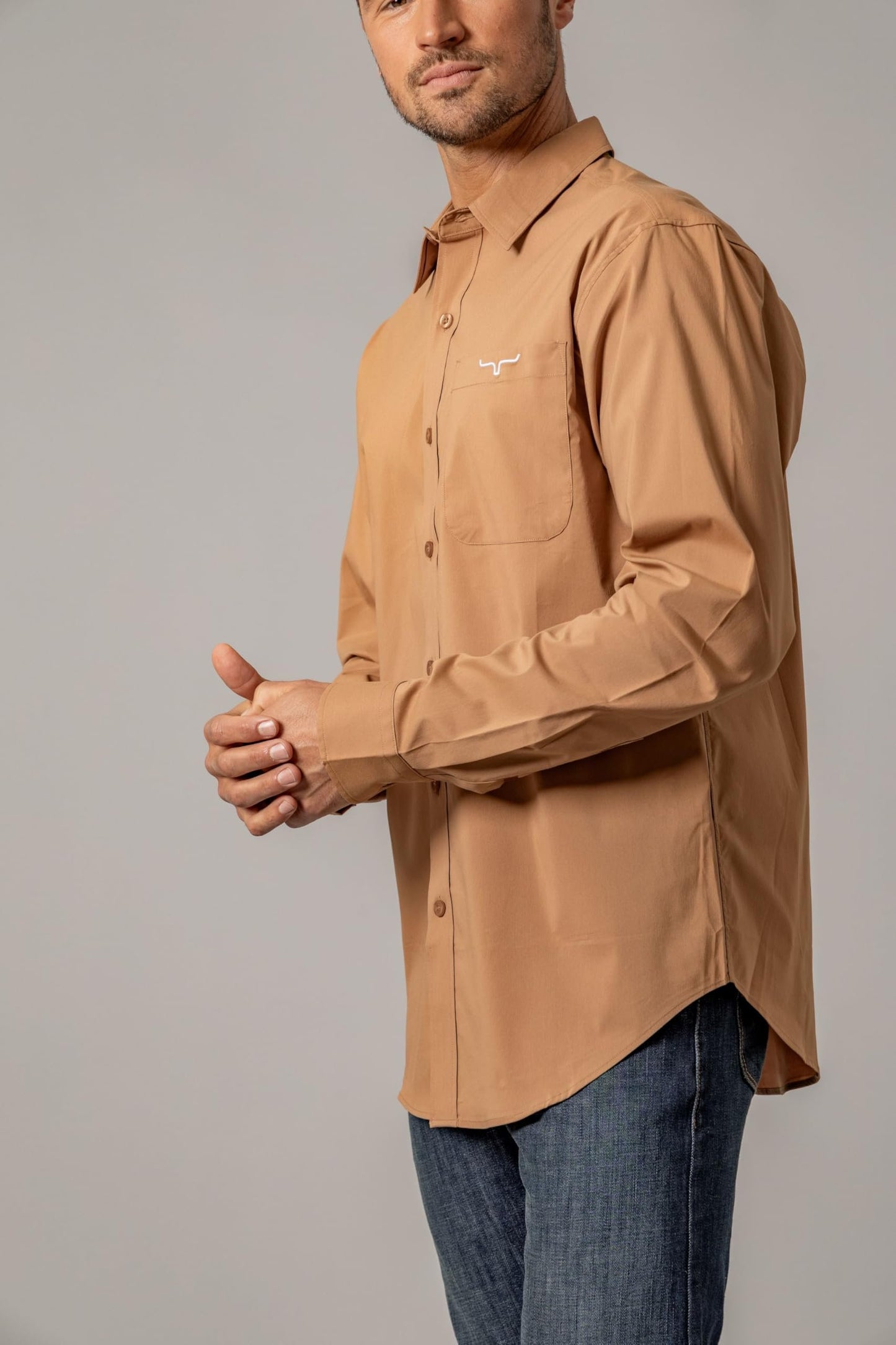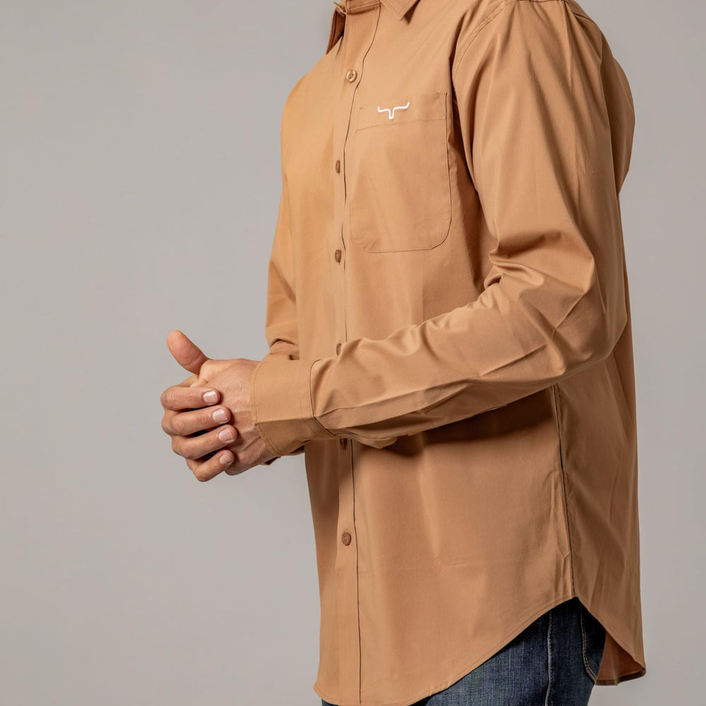 Kimes Ranch Men's KR Team Long Sleeve Dress Shirt, Brown