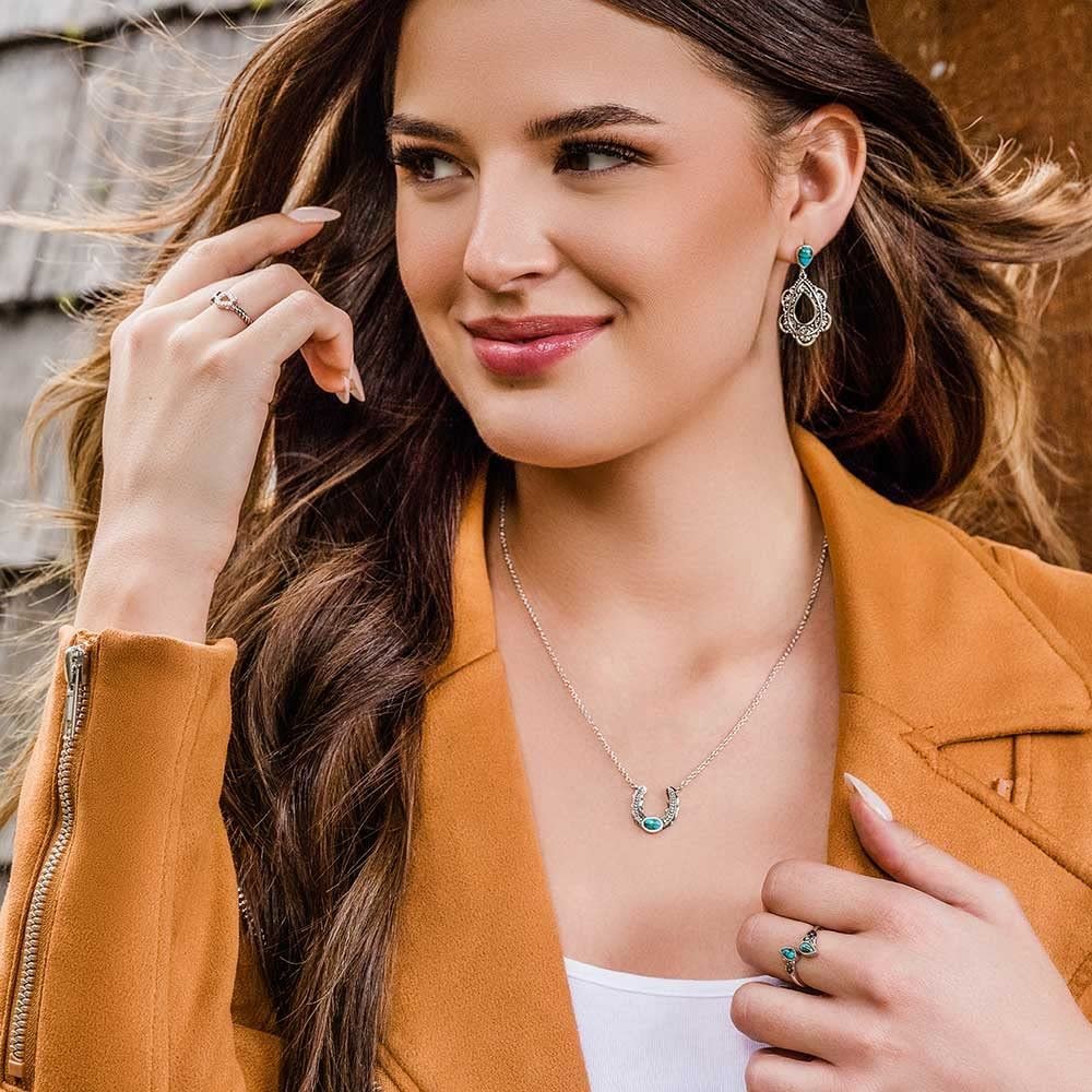 Montana Silversmiths Women's Not Shy Turquoise Horseshoe Necklace