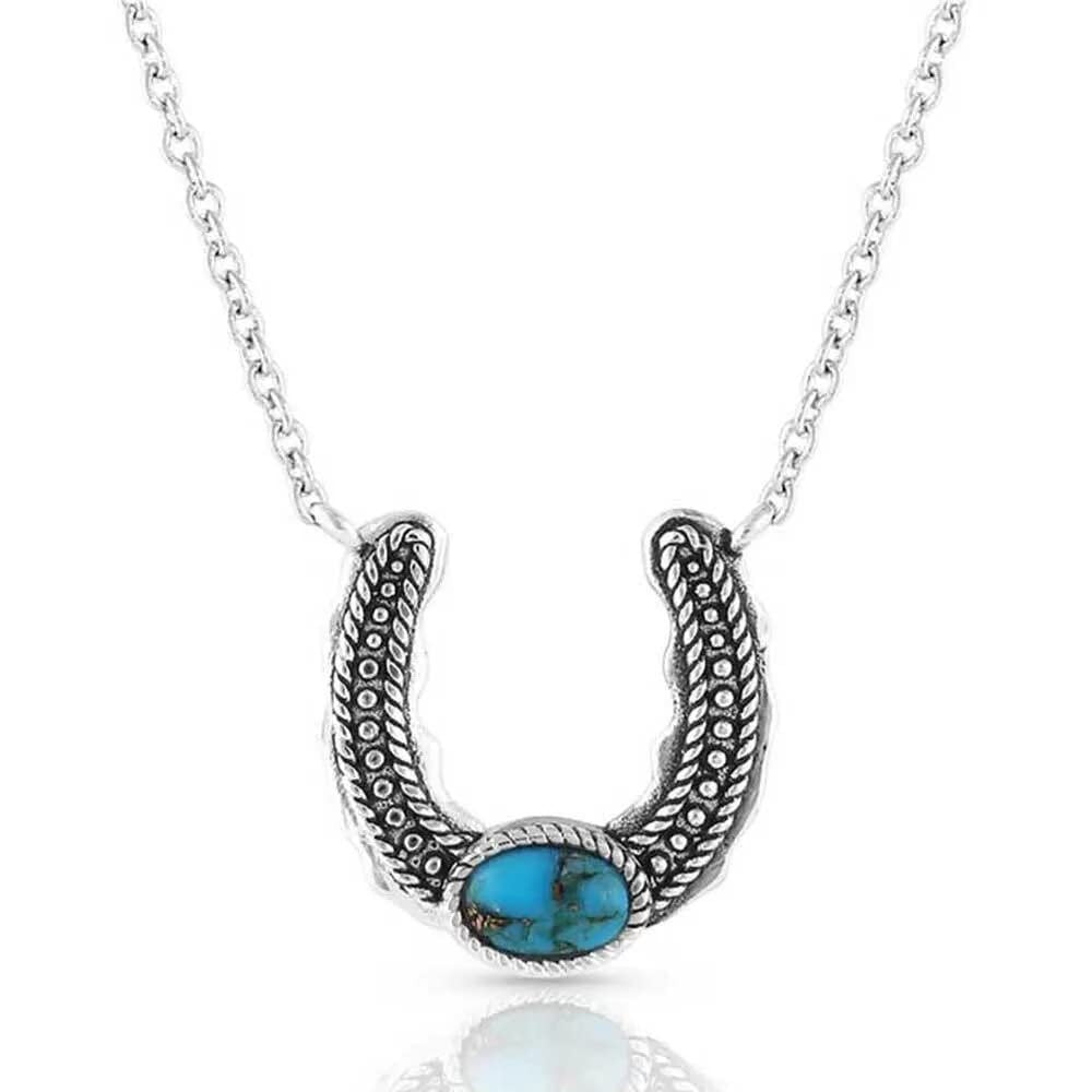 Add Montana Silversmiths Women's Not Shy Turquoise Horseshoe Necklace to the cart