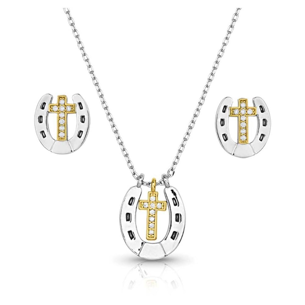 Add Montana Silversmiths Women's Glowing Trails Cross Horseshoe Jewelry Set to the cart