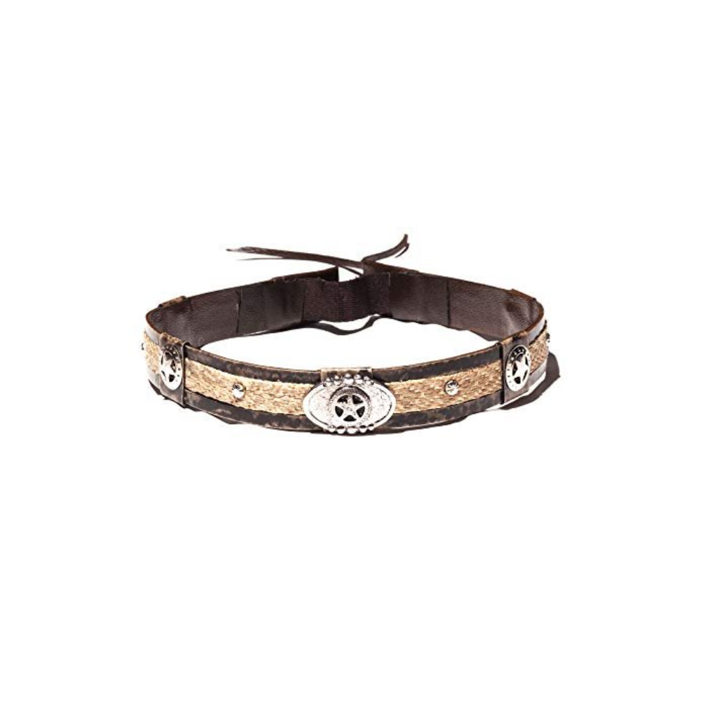 Add Phunky Horse Silver Star Hand Crafted Wide Hatband, Brown to the cart