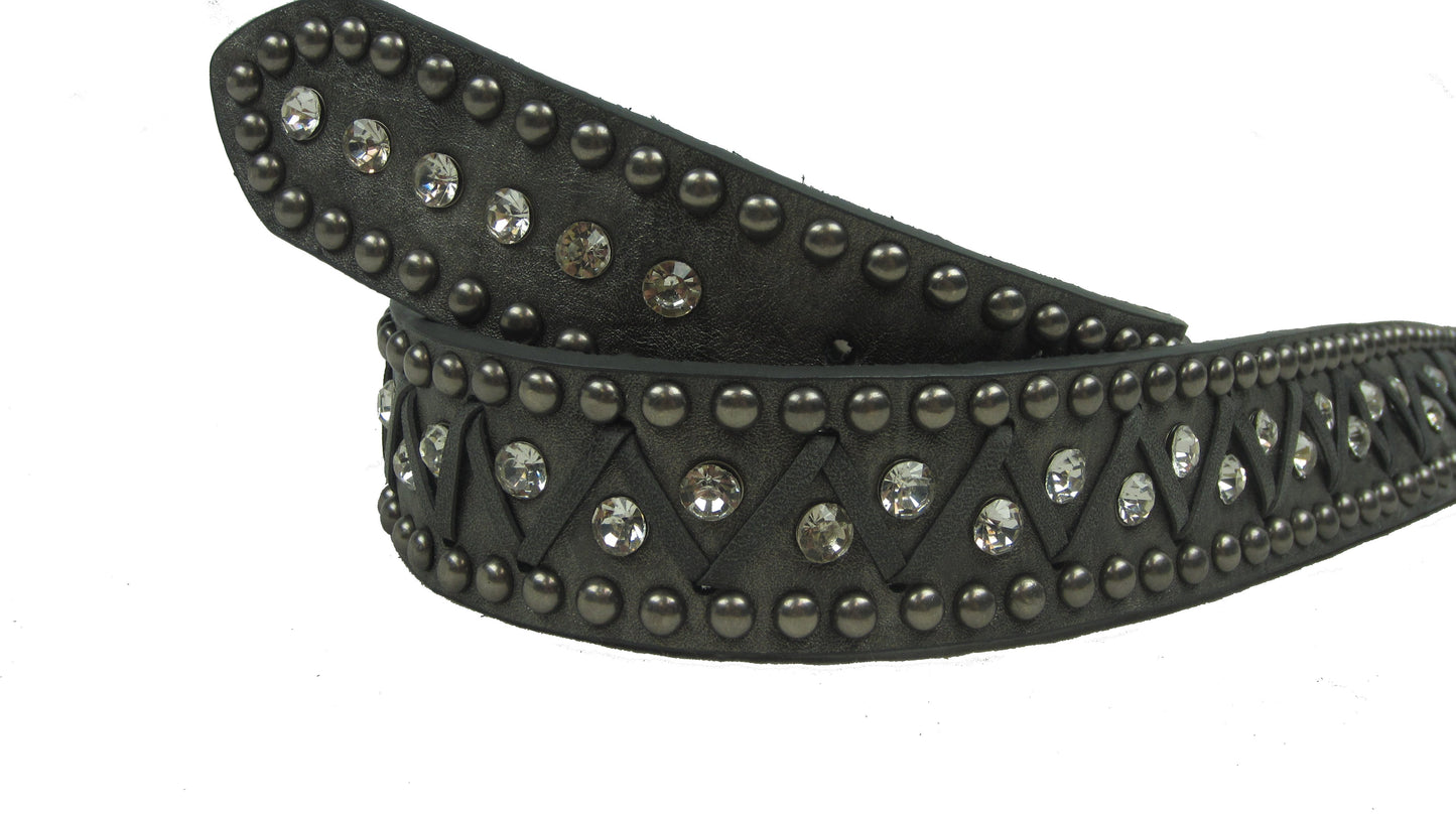 Kamberley Genuine Leather, Rhinestone Studded, Detachable Buckle Women's Belt