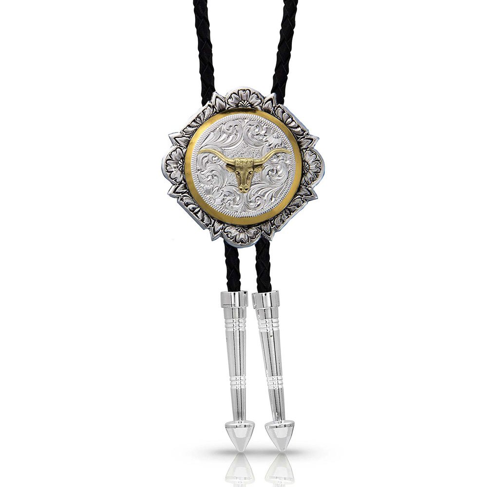 Add Montana Silversmiths Silver and Gold Engraved Button Bolo Tie to the cart