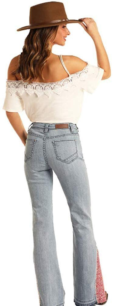 Rock and Roll Cowgirl High Rise Printed Trousers, Light Wash, 26x34