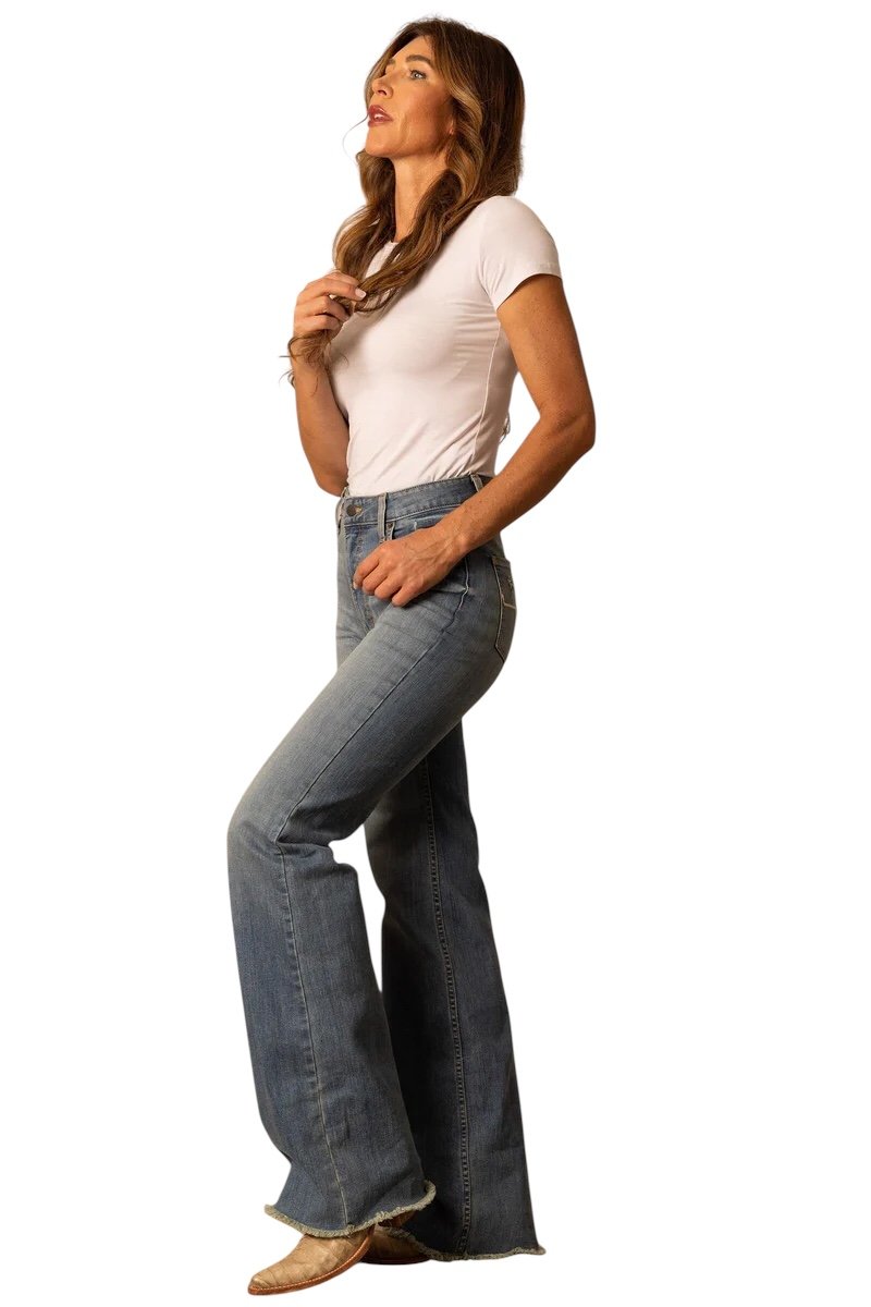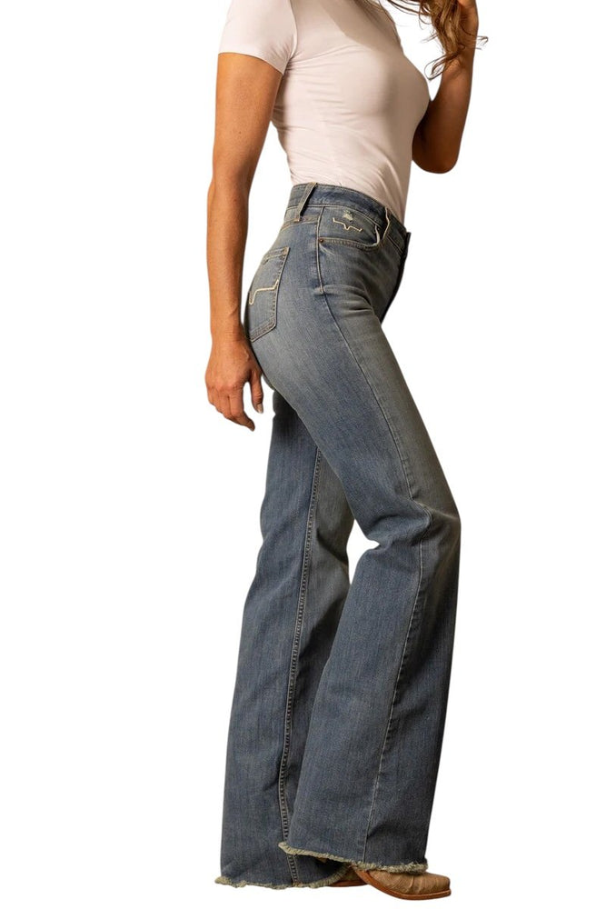 A high-rise stovepipe jean with a wide leg and raw hem, the Olivia is the perfect everyday jean. Made from our innovative tri-blend denim for maximum wearability and rebound, this lightweight jean is accented with our iconic Longhorn logo on both back pockets. Whether you're riding horses all day, running errands, or catching up with friends, Olivia is the most versatile western jean.