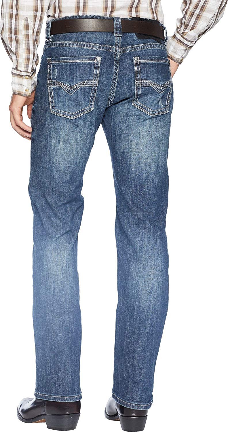 Rock and Roll Cowboy Men's Pistol Bootcut Denim with Stitches in Dark Wash, 38x32